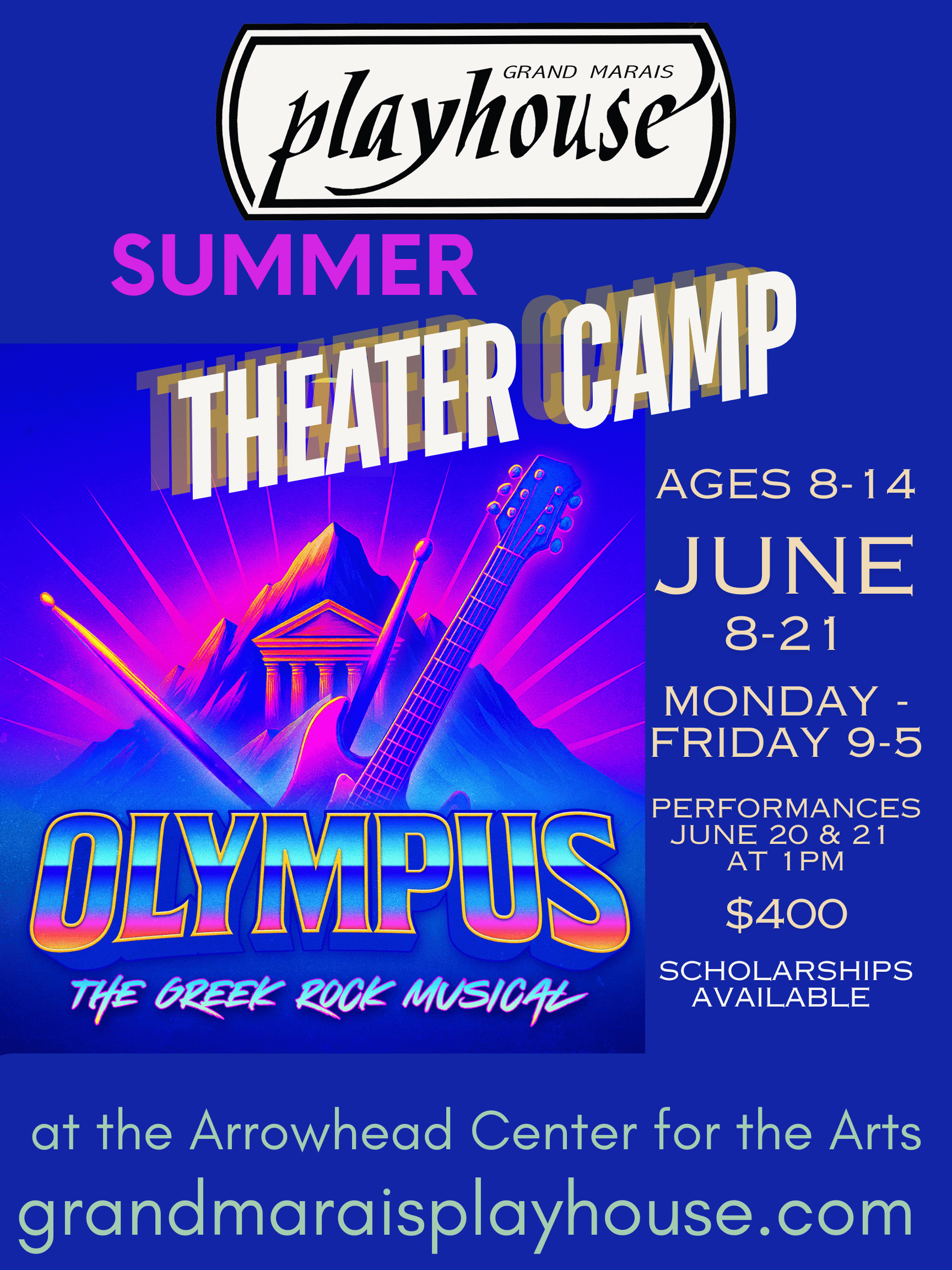 Youth ages 8-14 are encouraged to participate in the creating of Olympus, The Greek Rock Musical. The cost of the summer camp is $400. There are scholarships available.